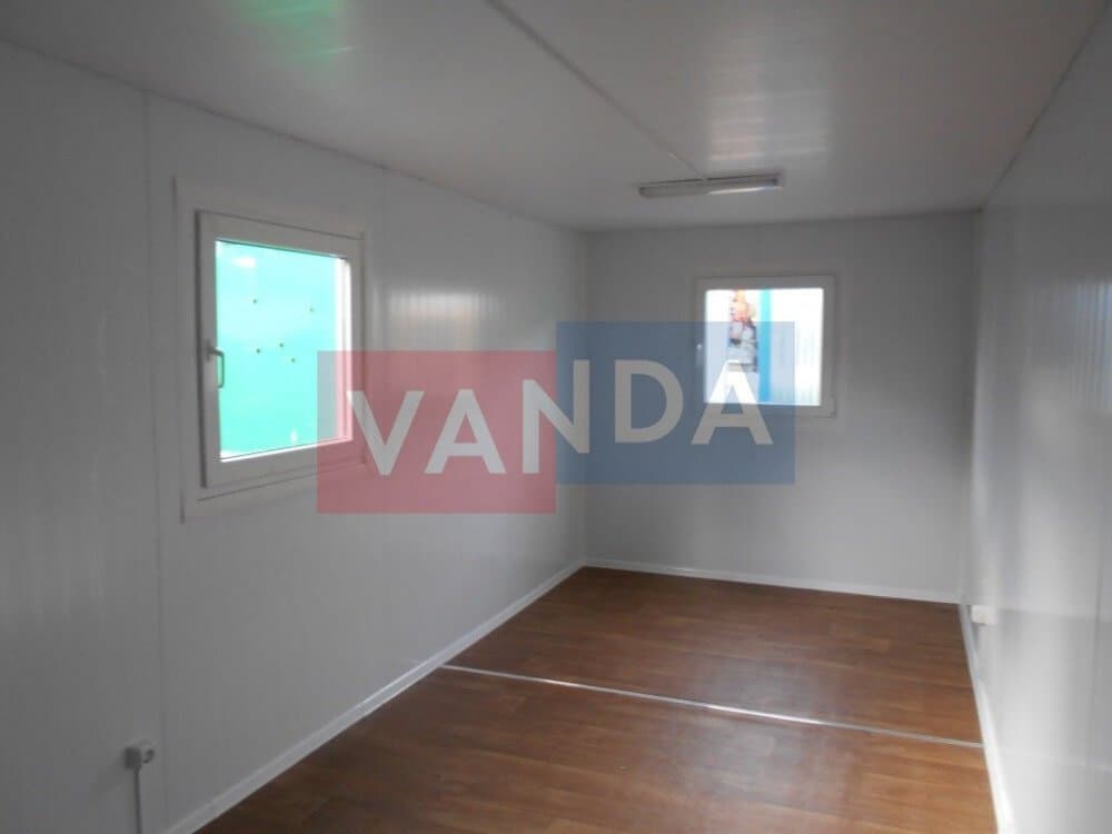 Контейнер на колесах состоит из металлического каркаса, который выполнен из профиля и укреплен сварным швом. Крыша покрыта листовым холоднокатанным окрашенным сварным металлом. Внешняя сторона стен обшита оцинкованным профнастилом. Внутренний каркас вагончика изготовлен из бруса. По всему периметру помещение утеплено и пароизолировано. Внутренняя отделка осуществляется по выбору заказчика. Это может быть вагонка или оргалитовые листы. Пол вагончика состоит из обрезной доски, пароизоляции, утепления поверх которого уложены ДСП. Вагончик оборудован дверью из оргалита и деревянными окнами с двойным остеклением.